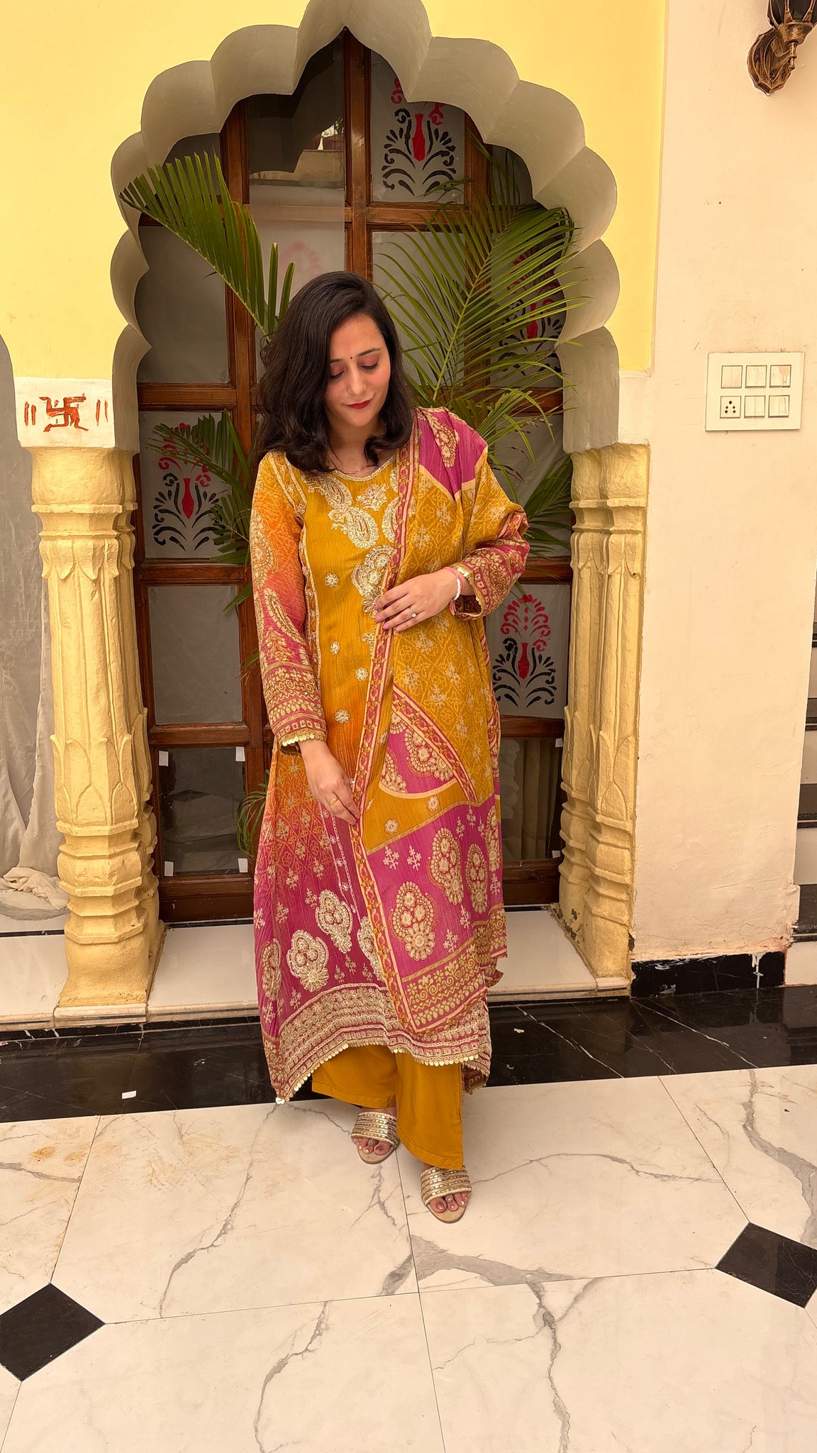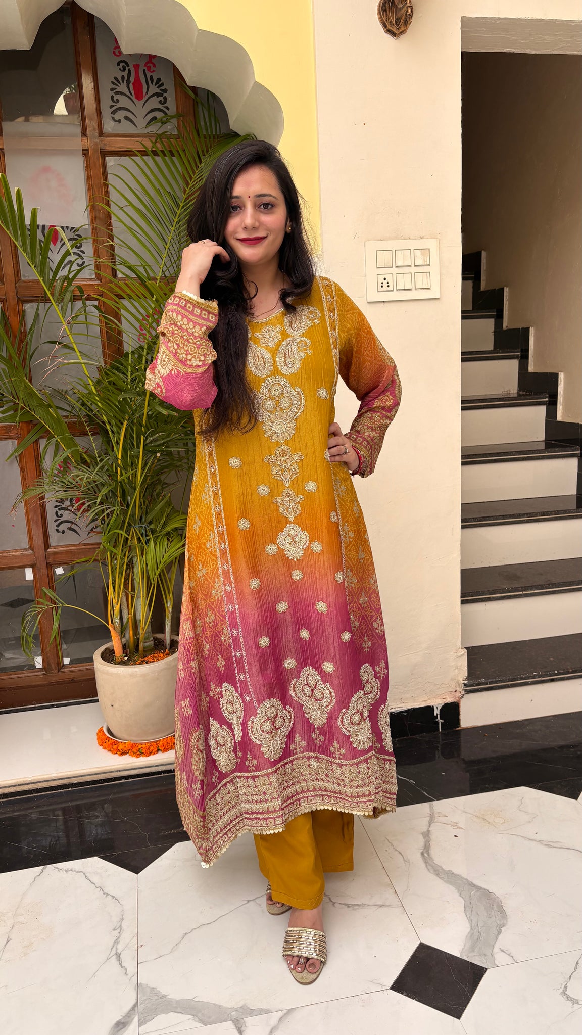 Made from soft crush shimmer material, this A-line kurta drapes gracefully along the body, creating a flattering silhouette. The fabric offers a luxurious sheen and crinkled texture that elevates your look without feeling overdone—ideal for special occasions or stylish get-togethers.